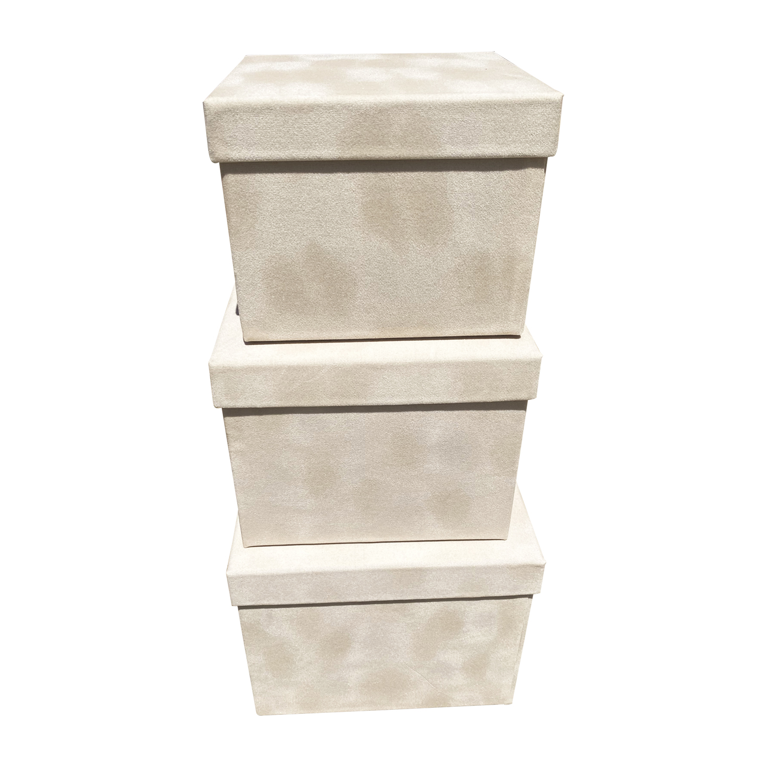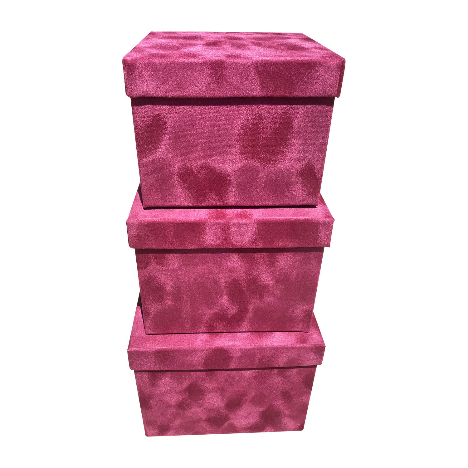 This velvet covered box comes in a set of 3 pieces in red, black, white, gray, burgundy, and pink. The size of each box in a set from smallest to largest are: